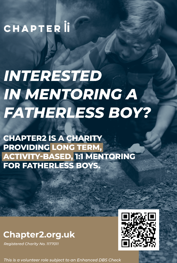 A Reading-based charity called Chapter2, which provides male mentors for fatherless boys, is hosting a mentor training day for anyone interested in mentoring a fatherless boy in the local area.