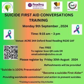 Community Suicide conversations brought by grassroots community organisations as part of Suicide Awareness Month. We are looking to build community resilience. Conversations will be supported by community suicide first aid ambassadors.